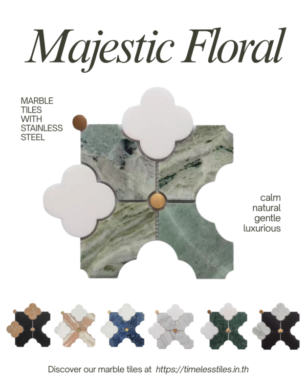 Majestic Floral Tiles คือกระเบื้องที่เป็นดั่งผลงานศิลปะที่เปลี่ยนผนังและพื้นของคุณให้กลายเป็นพื้นที่ทรงคุณค่า หรูหรา และมีเอกลักษณ์ไม่เหมือนใคร