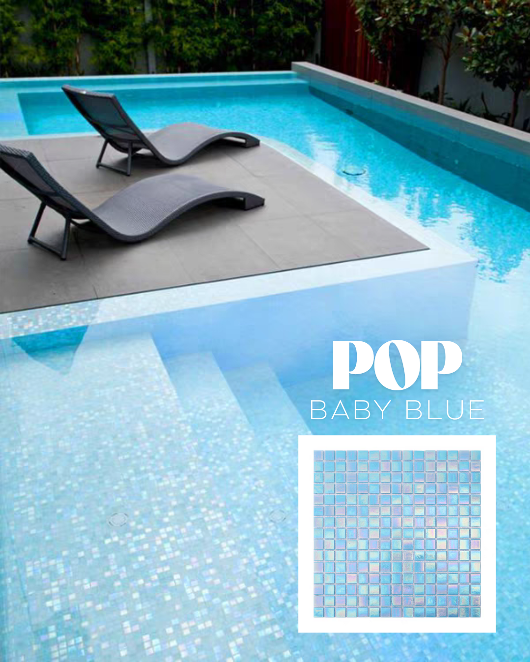 The tiles’ shimmering surface enhances movement and reflection in water-heavy spaces like pools, fountains, or spas.