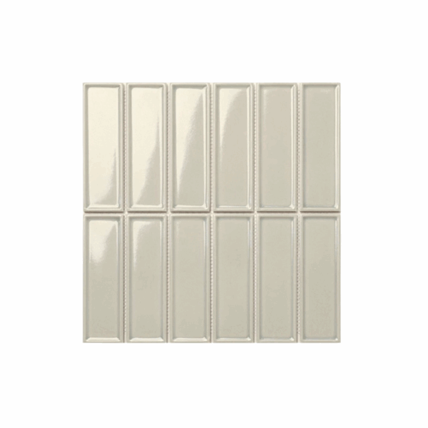 Bar Mosaic Tiles stand out with their unique raised-edge design on all four sides, giving each piece a distinct texture and depth. The glossy finish reflects light and creates soft shadows that add visual interest to any wall. Whether for homes, cafés, or boutiques, these tiles strike the perfect balance between minimalism and playful design.