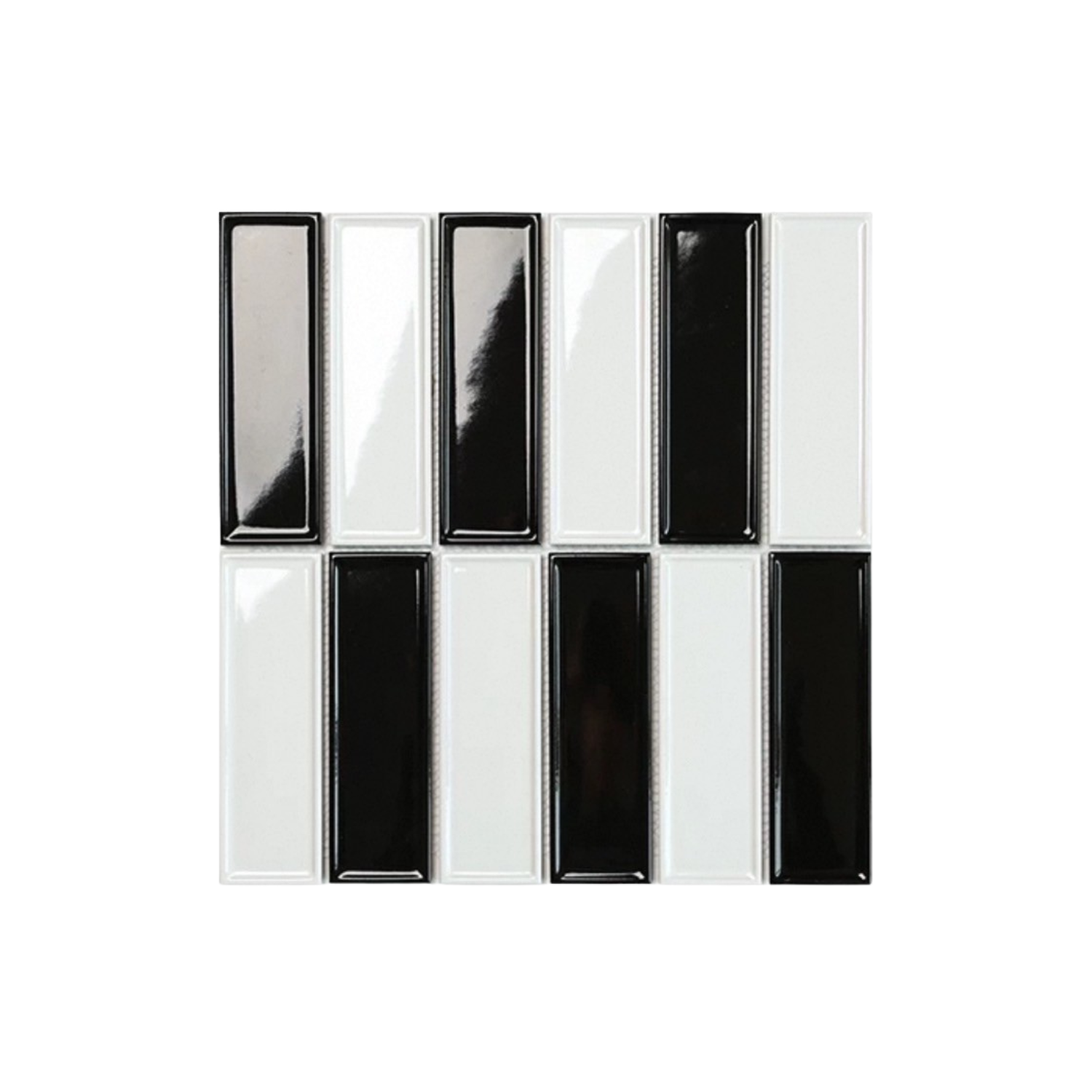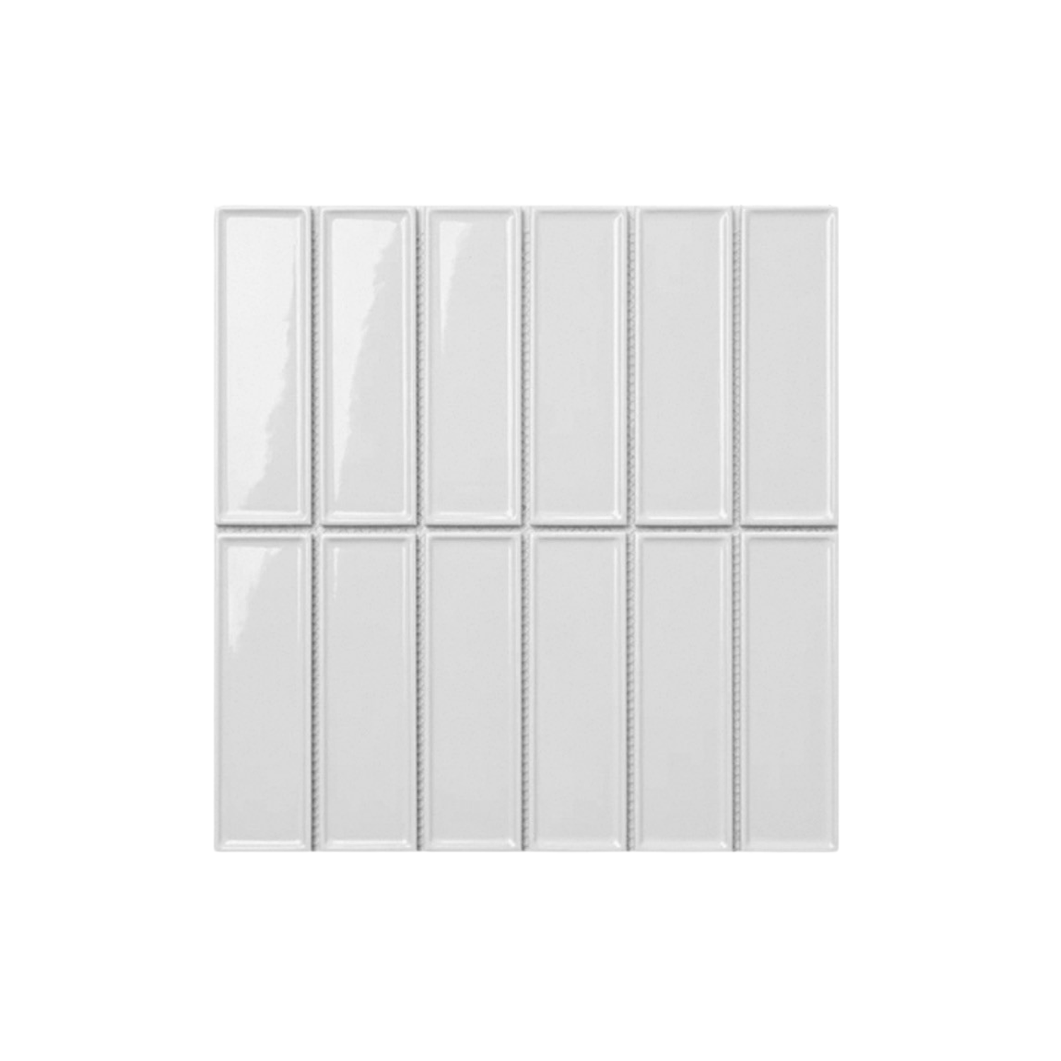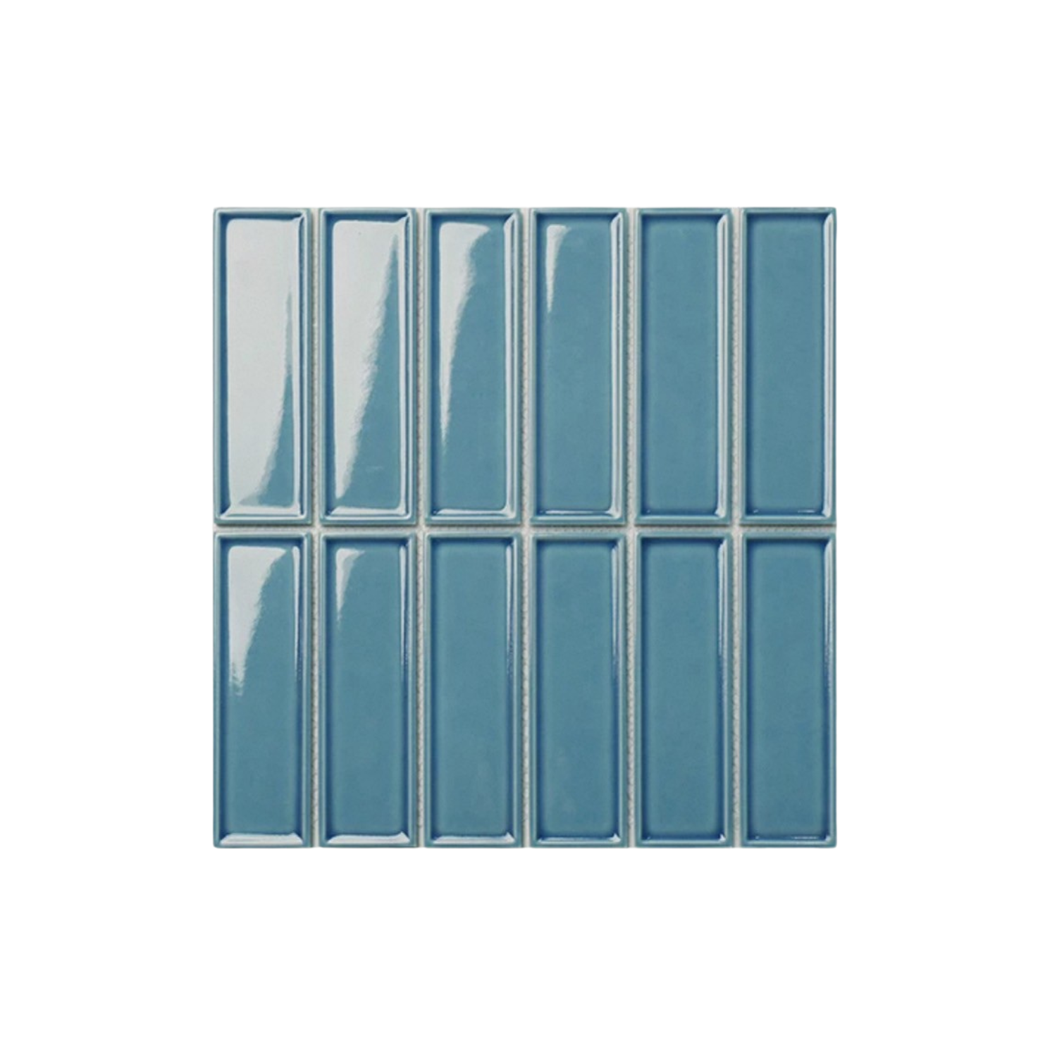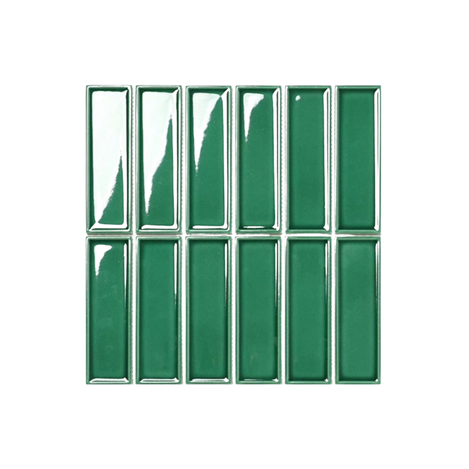 Bar Mosaic Tiles stand out with their unique raised-edge design on all four sides, giving each piece a distinct texture and depth. The glossy finish reflects light and creates soft shadows that add visual interest to any wall. Whether for homes, cafés, or boutiques, these tiles strike the perfect balance between minimalism and playful design.