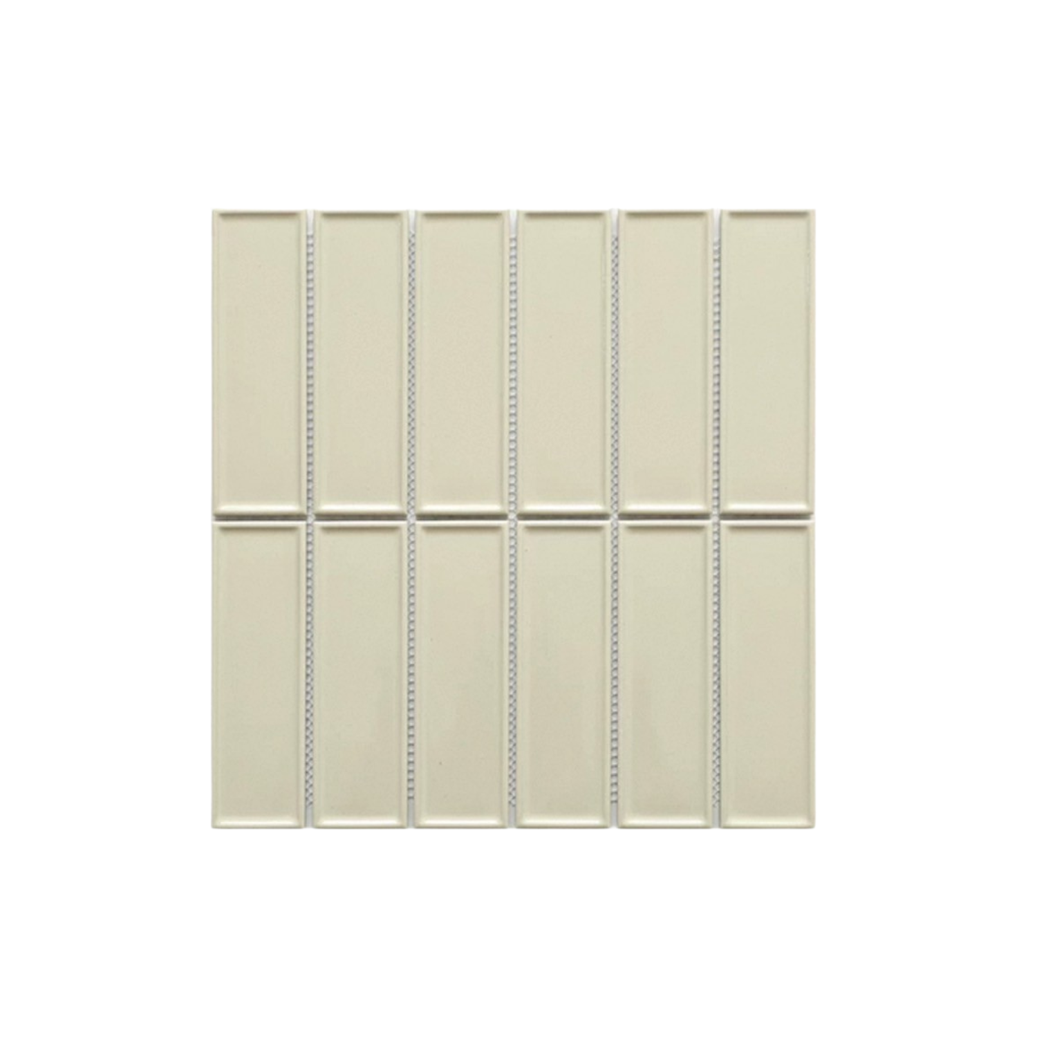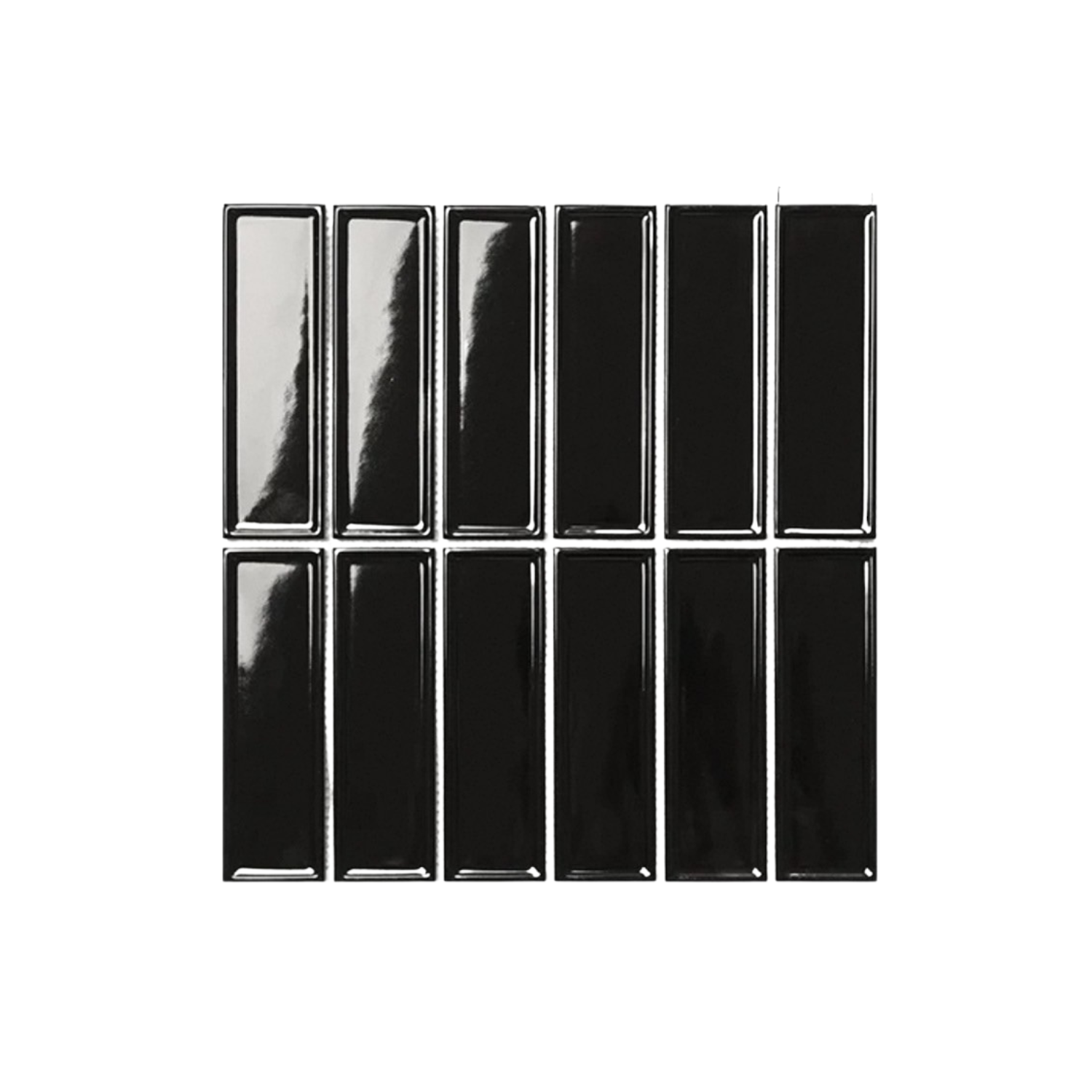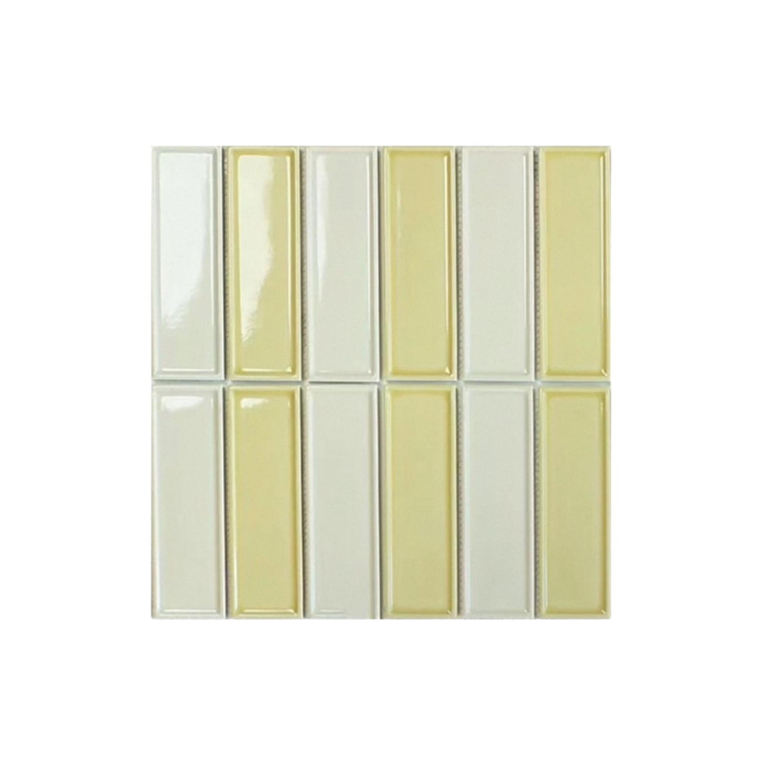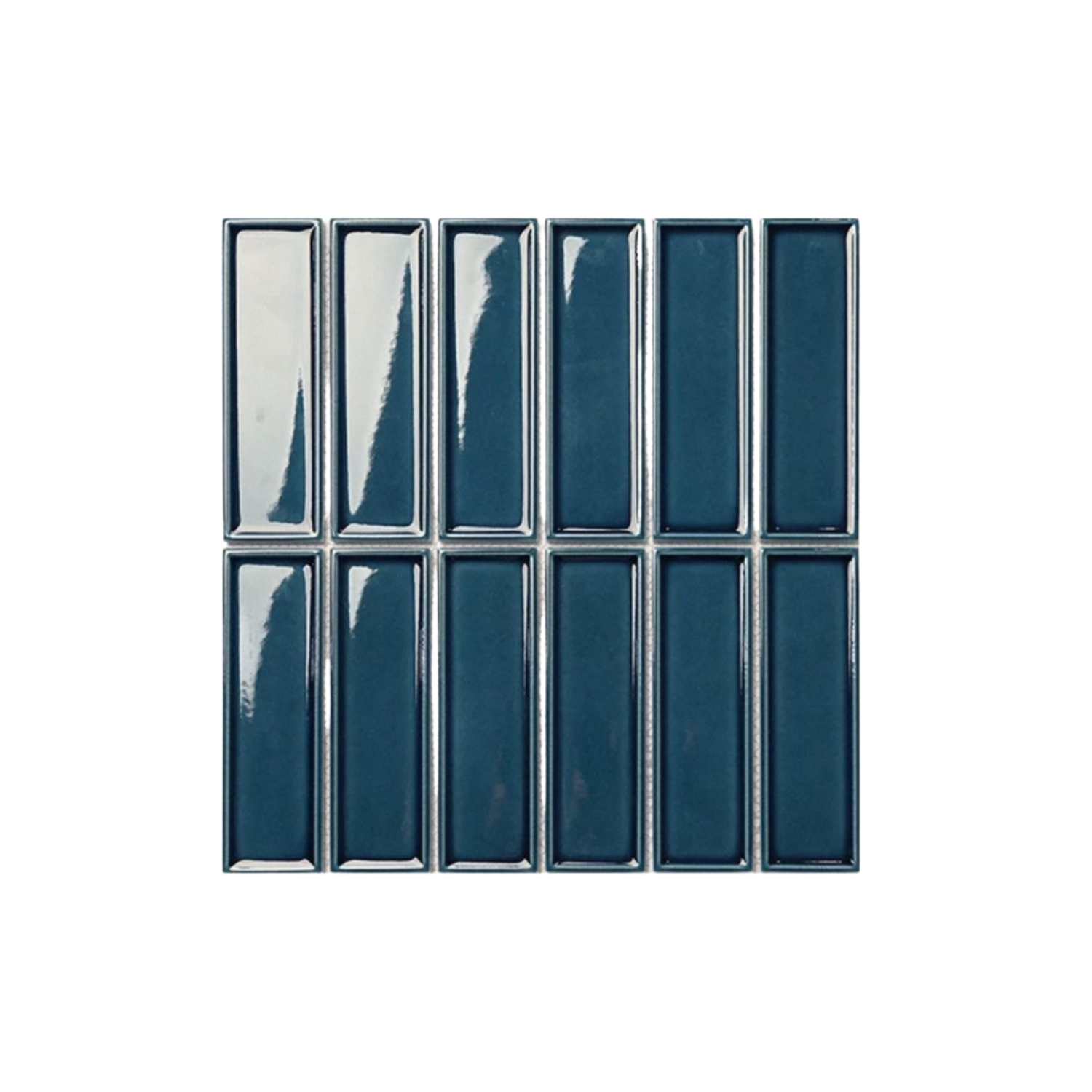Bar Mosaic Tiles stand out with their unique raised-edge design on all four sides, giving each piece a distinct texture and depth. The glossy finish reflects light and creates soft shadows that add visual interest to any wall. Whether for homes, cafés, or boutiques, these tiles strike the perfect balance between minimalism and playful design.