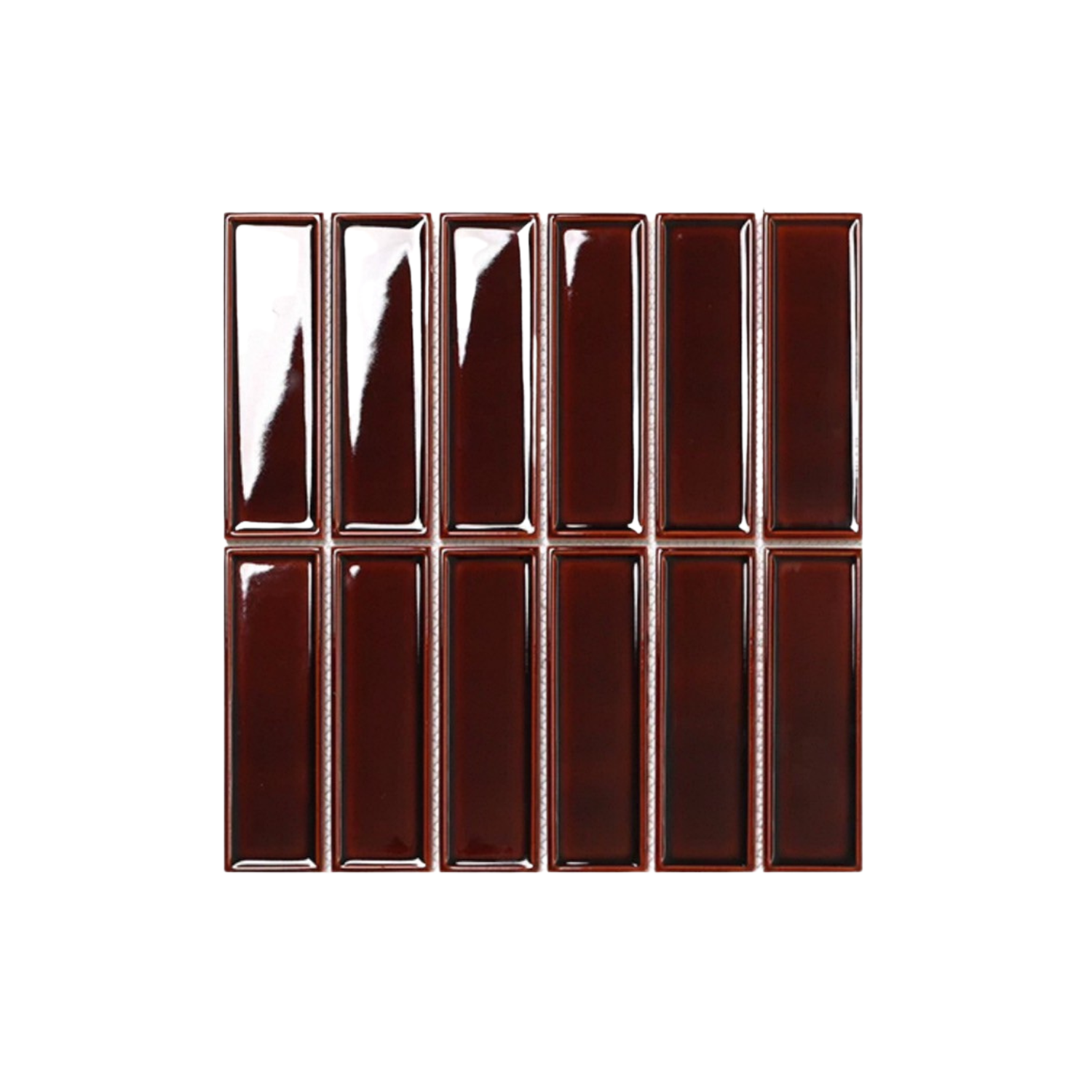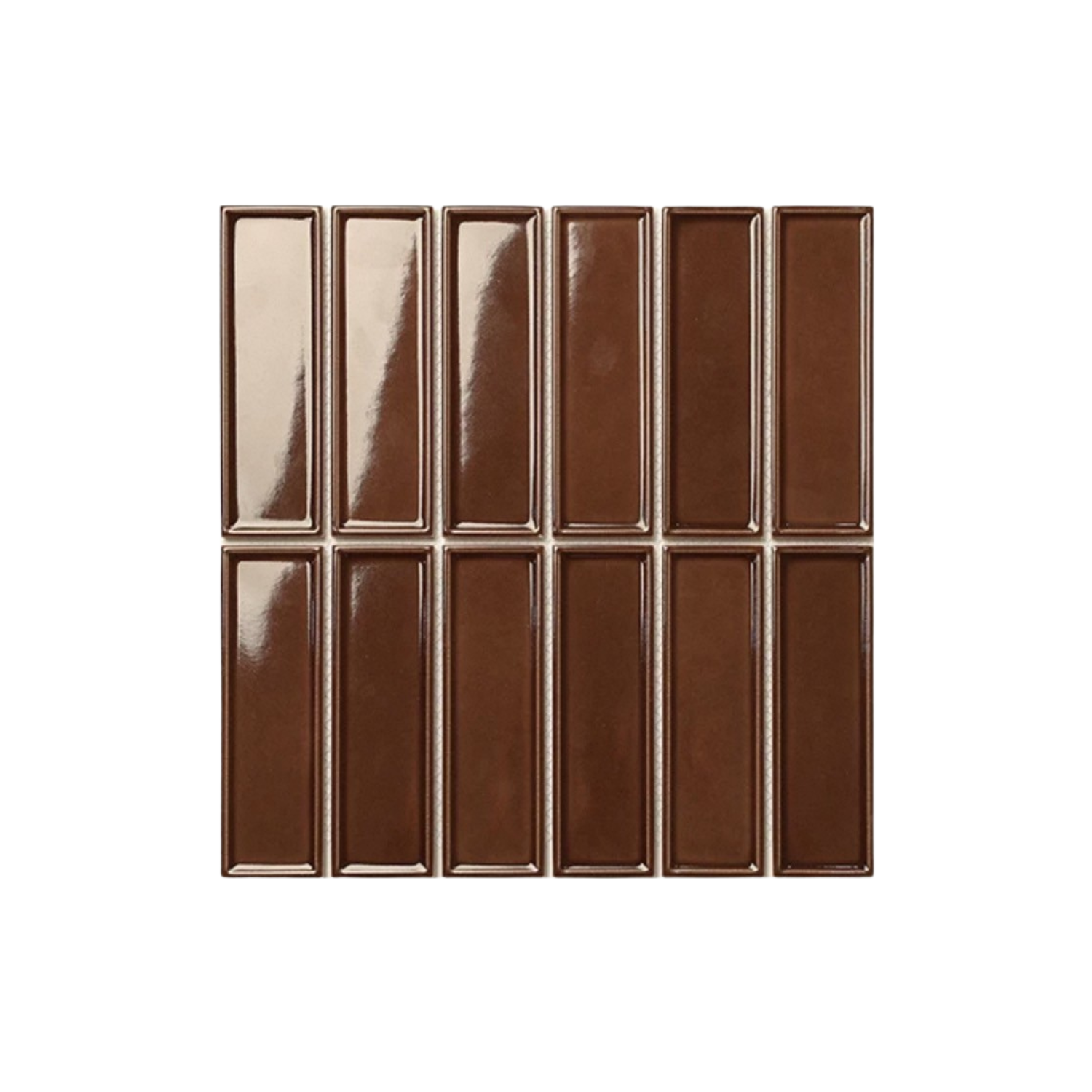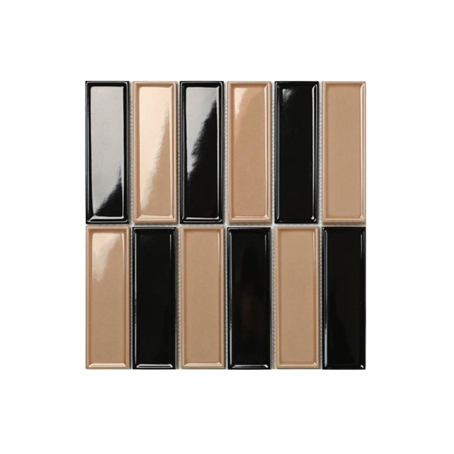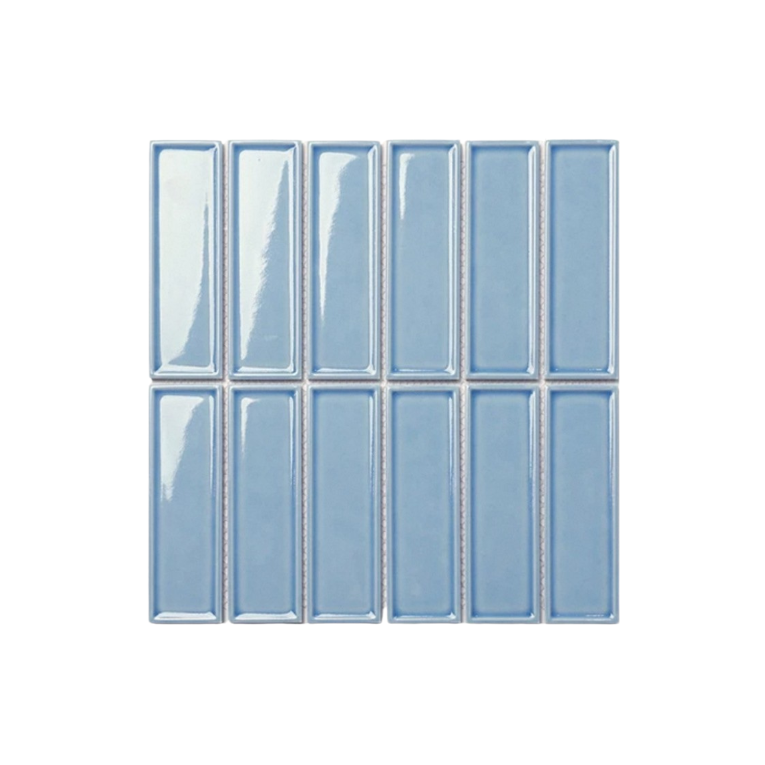 Bar Mosaic Tiles stand out with their unique raised-edge design on all four sides, giving each piece a distinct texture and depth. The glossy finish reflects light and creates soft shadows that add visual interest to any wall. Whether for homes, cafés, or boutiques, these tiles strike the perfect balance between minimalism and playful design.