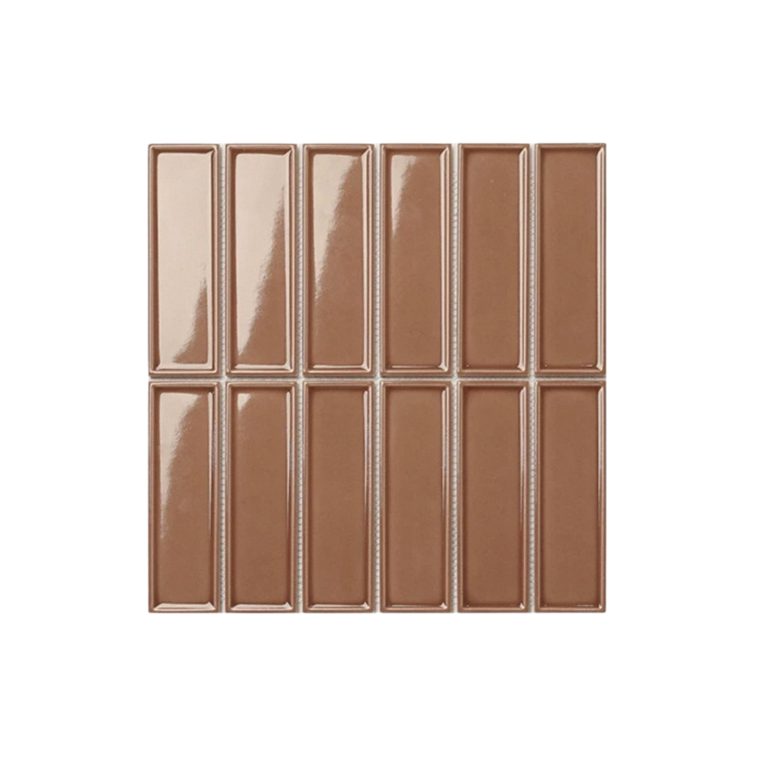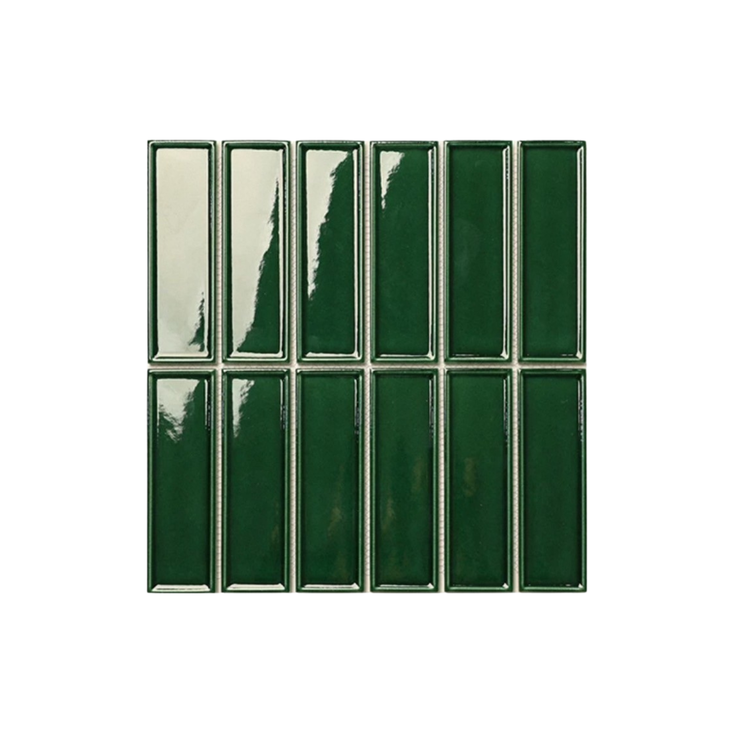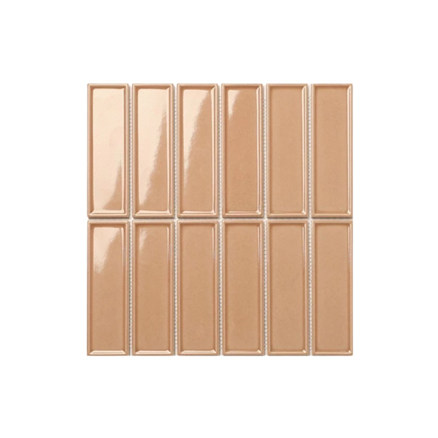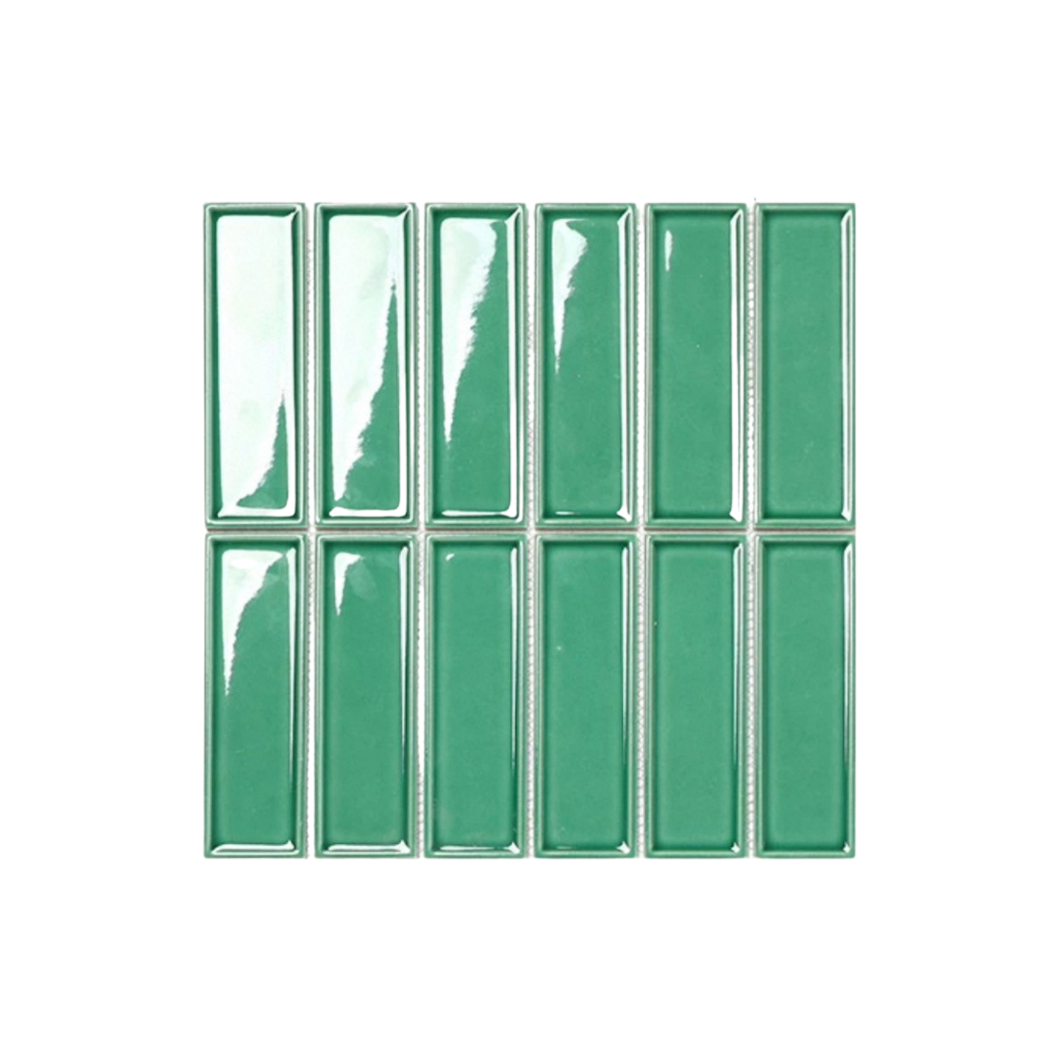 Bar Mosaic Tiles stand out with their unique raised-edge design on all four sides, giving each piece a distinct texture and depth. The glossy finish reflects light and creates soft shadows that add visual interest to any wall. Whether for homes, cafés, or boutiques, these tiles strike the perfect balance between minimalism and playful design.