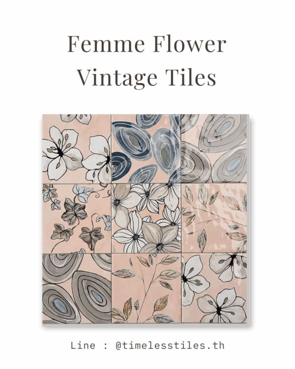 ด้วยลวดลายดอกไม้และเฉดสีพาสเทลอ่อนหวาน กระเบื้องชุดนี้เหมาะอย่างยิ่งกับการแต่งห้องในสไตล์วินเทจที่ให้ความรู้สึกเหมือนย้อนยุคแบบร่วมสมัย
