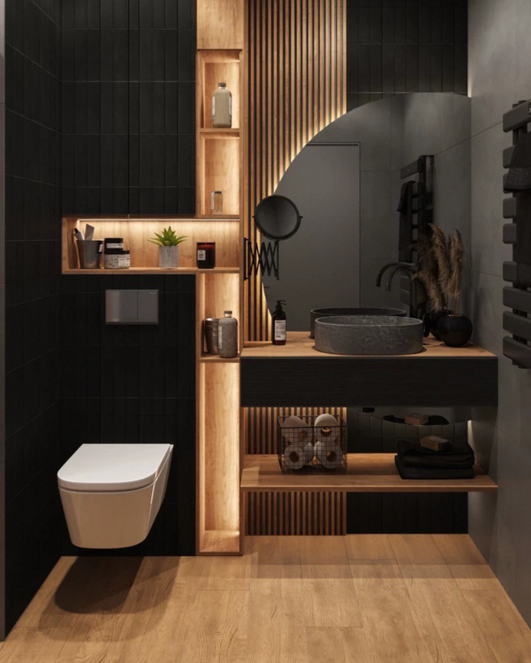 - ใช้ Hairline Matte สี Black คู่กับผนังสีเทาเข้มหรือไม้เข้ม เพื่อให้เกิดความกลมกลืนแบบ modern industrial