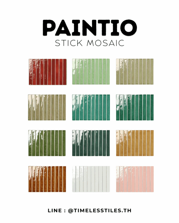Paintio Stick Mosaic คือกระเบื้องโมเสกเซรามิกที่ออกแบบมาเพื่อเติมเต็มทั้งความงามและคาแร็กเตอร์ให้กับทุกพื้นที่ ด้วยรูปทรงแท่งยาว (stick) ที่เรียงตัวอย่างเป็นระเบียบ แต่กลับแฝงด้วยความพิเศษที่ไม่เหมือนใคร